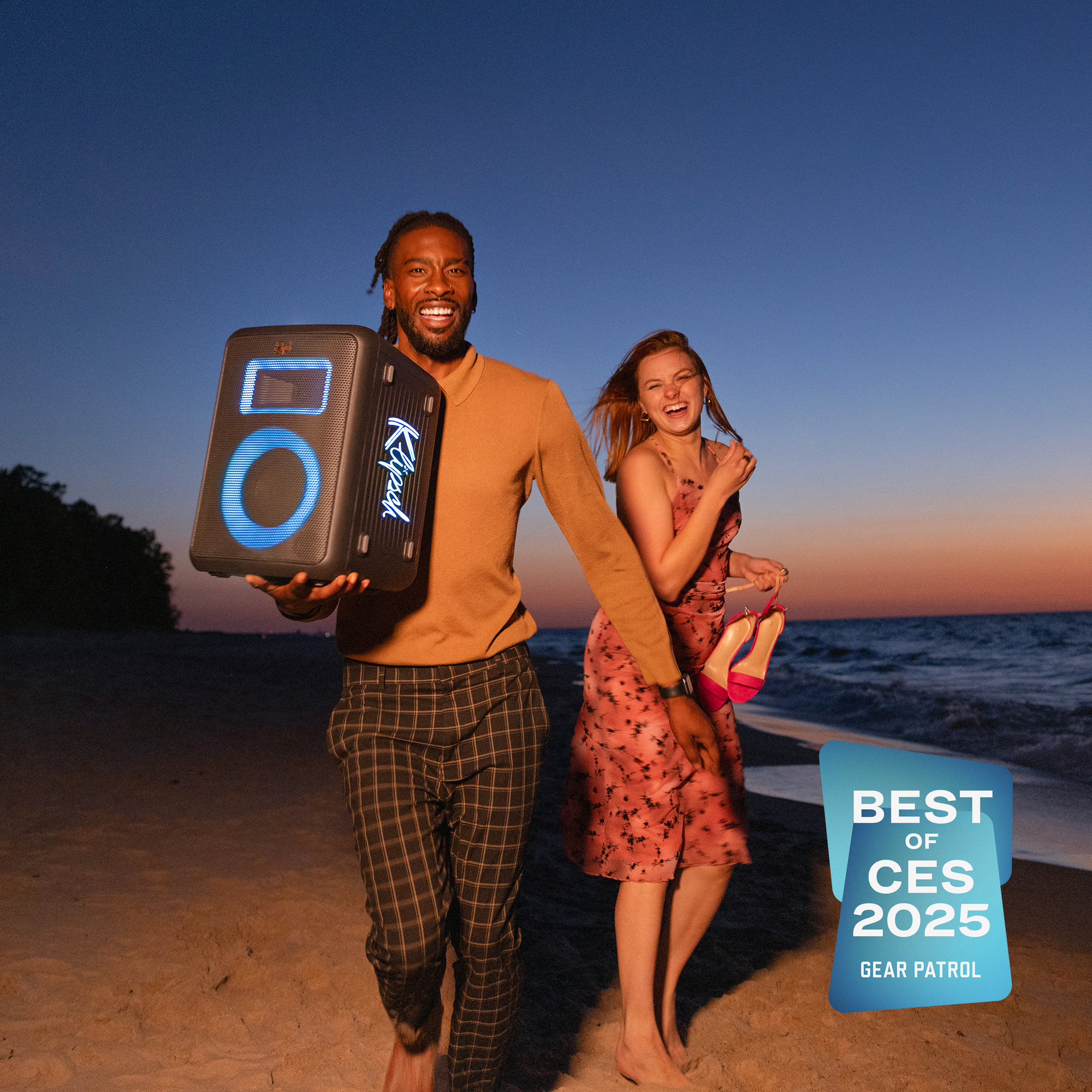 IPX4 splash rating and a 12hr battery life (lights off) or 8hr (lights on) and will keep your party going